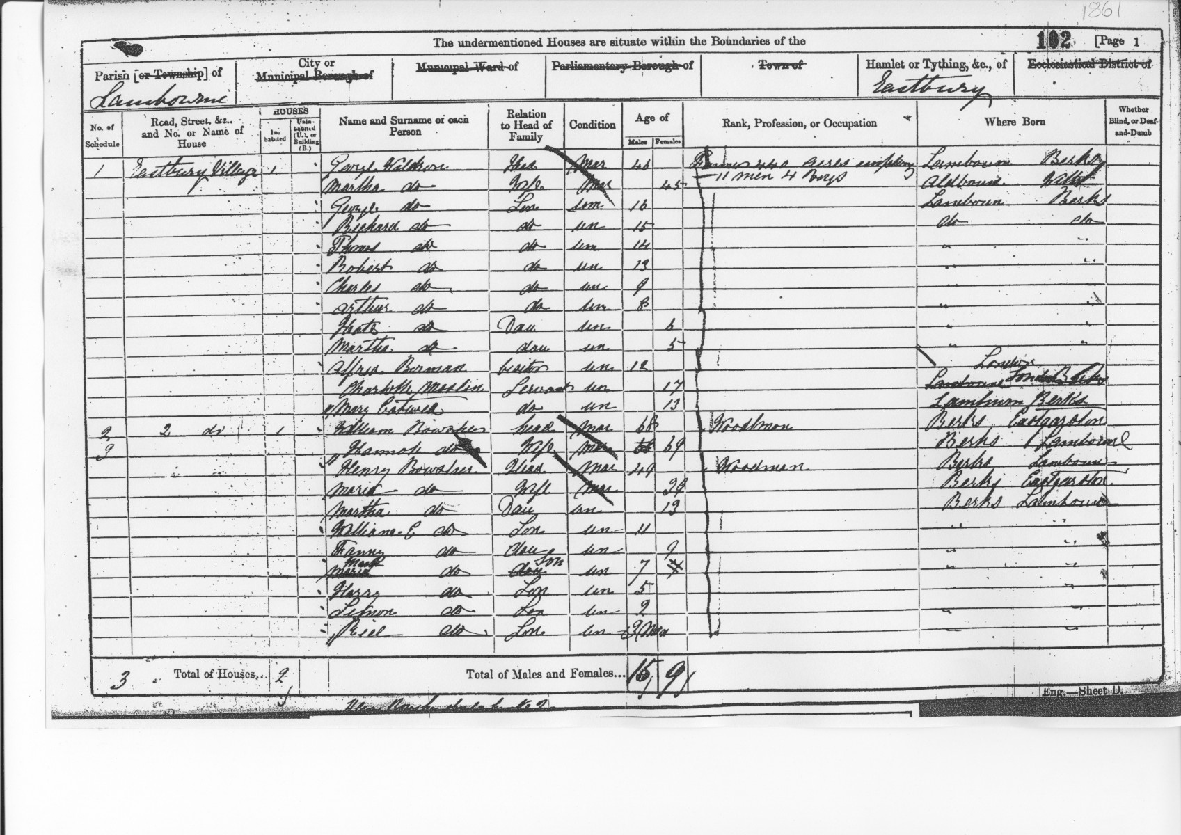 CH135: Eastbury 1861 Census RG9 726 f102b