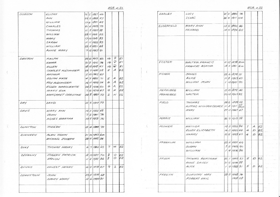 East Garston Burials D-F