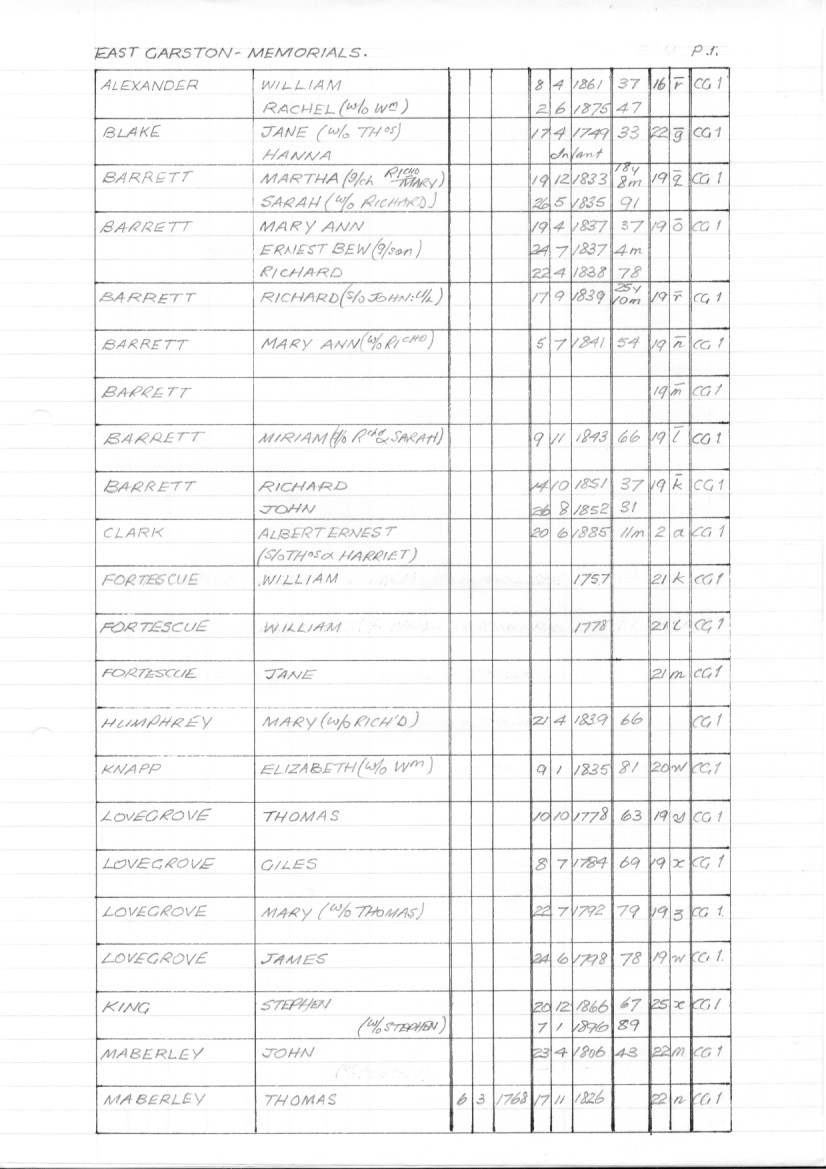 CH223: East Garston Memorials Church Graveyard 1 1742-1918 A-M