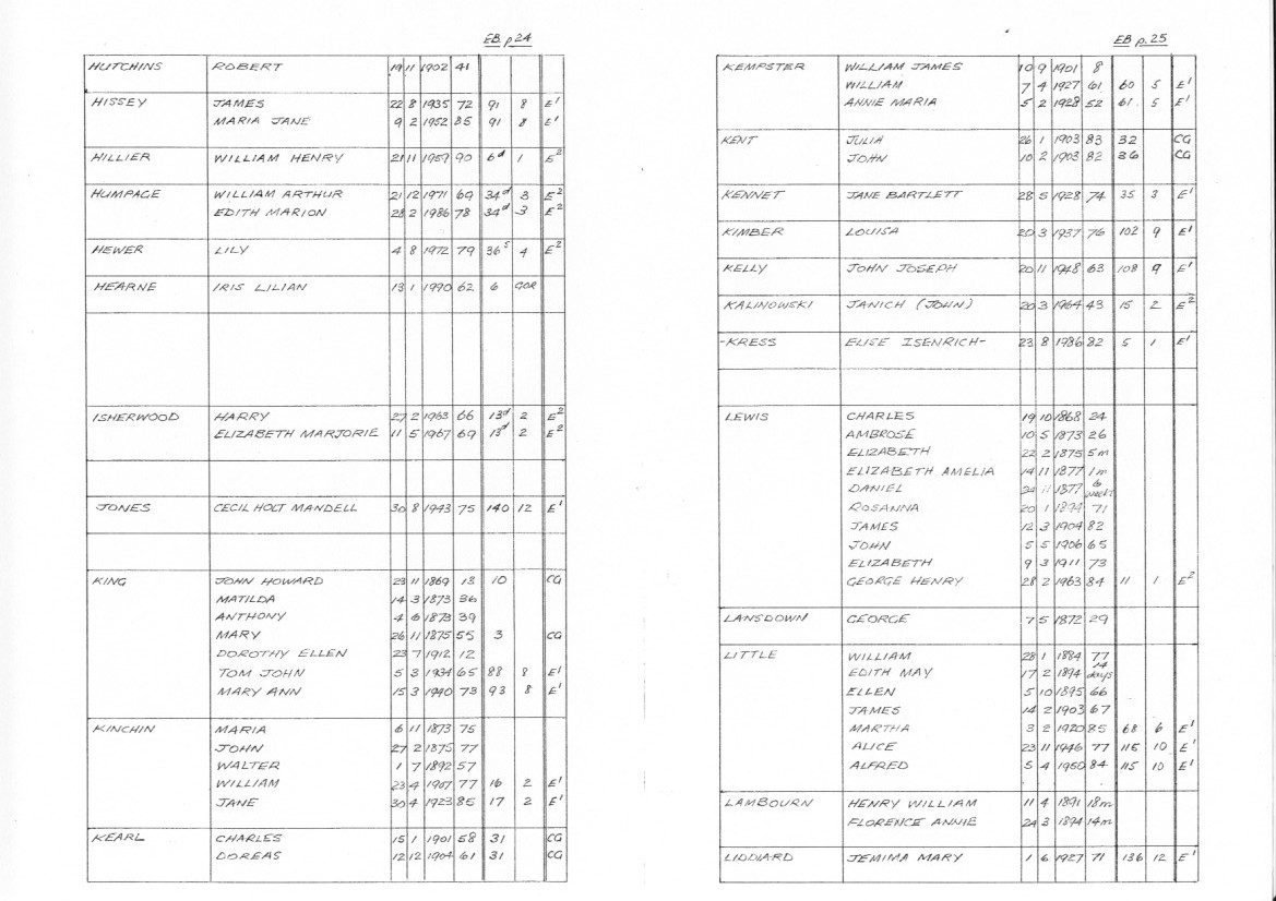Eastbury Burials H-L