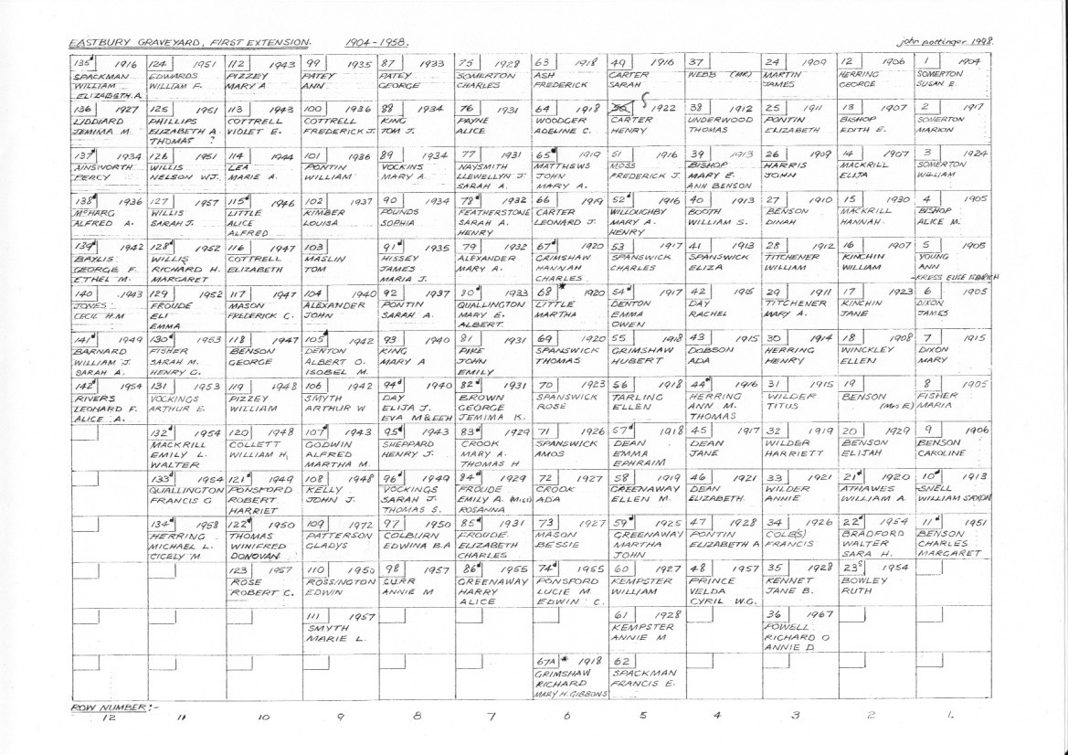 Eastbury Memorials, Chart of Church Graveyard Extension 1, 1904-1958
