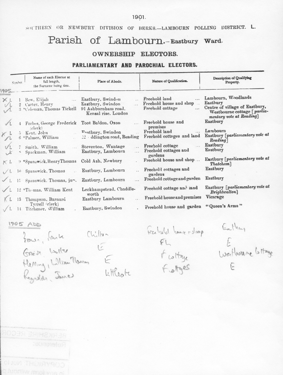 Electoral Roll by Occupation, Eastbury Ward, 1901 and 1905 02