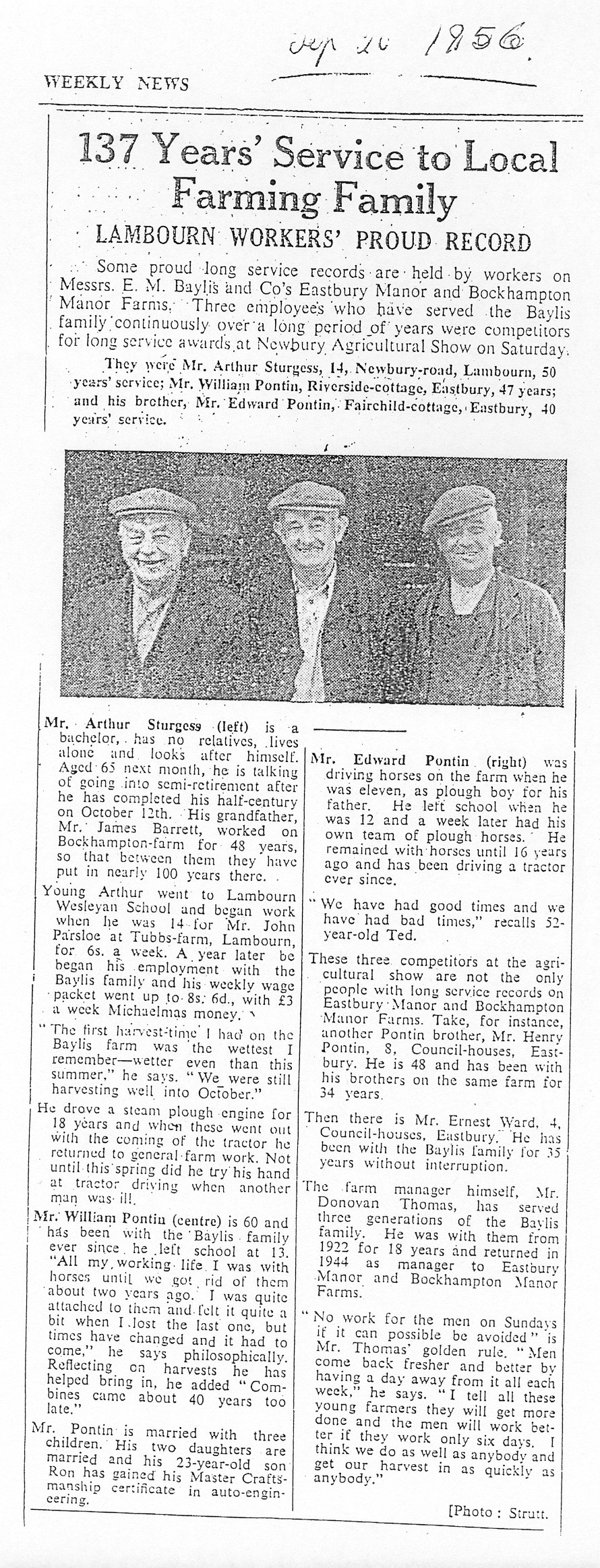 Newbury Weekly News 1956, Farm workers