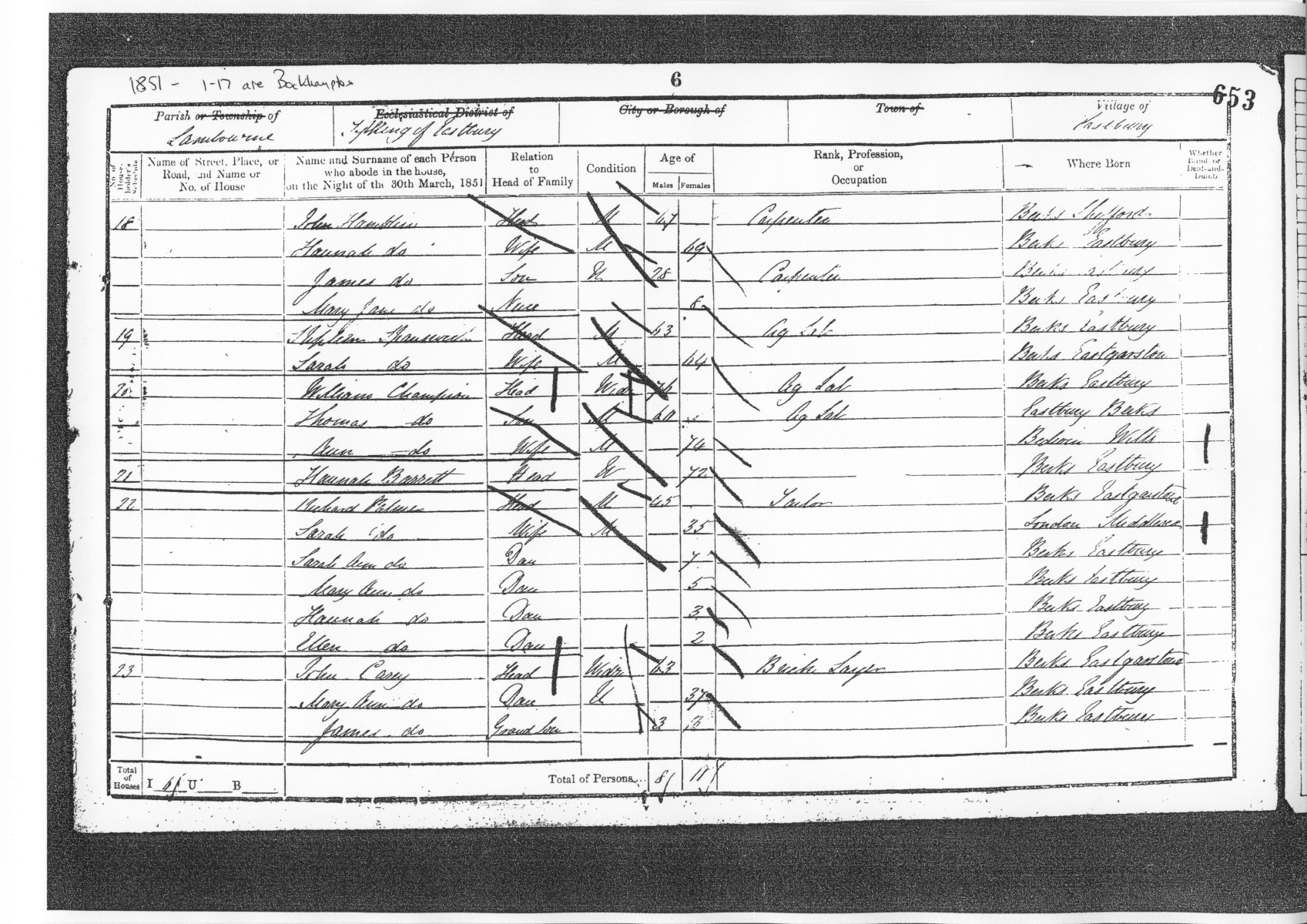 CH116: Eastbury 1851 Census HO 107 1686 f653b