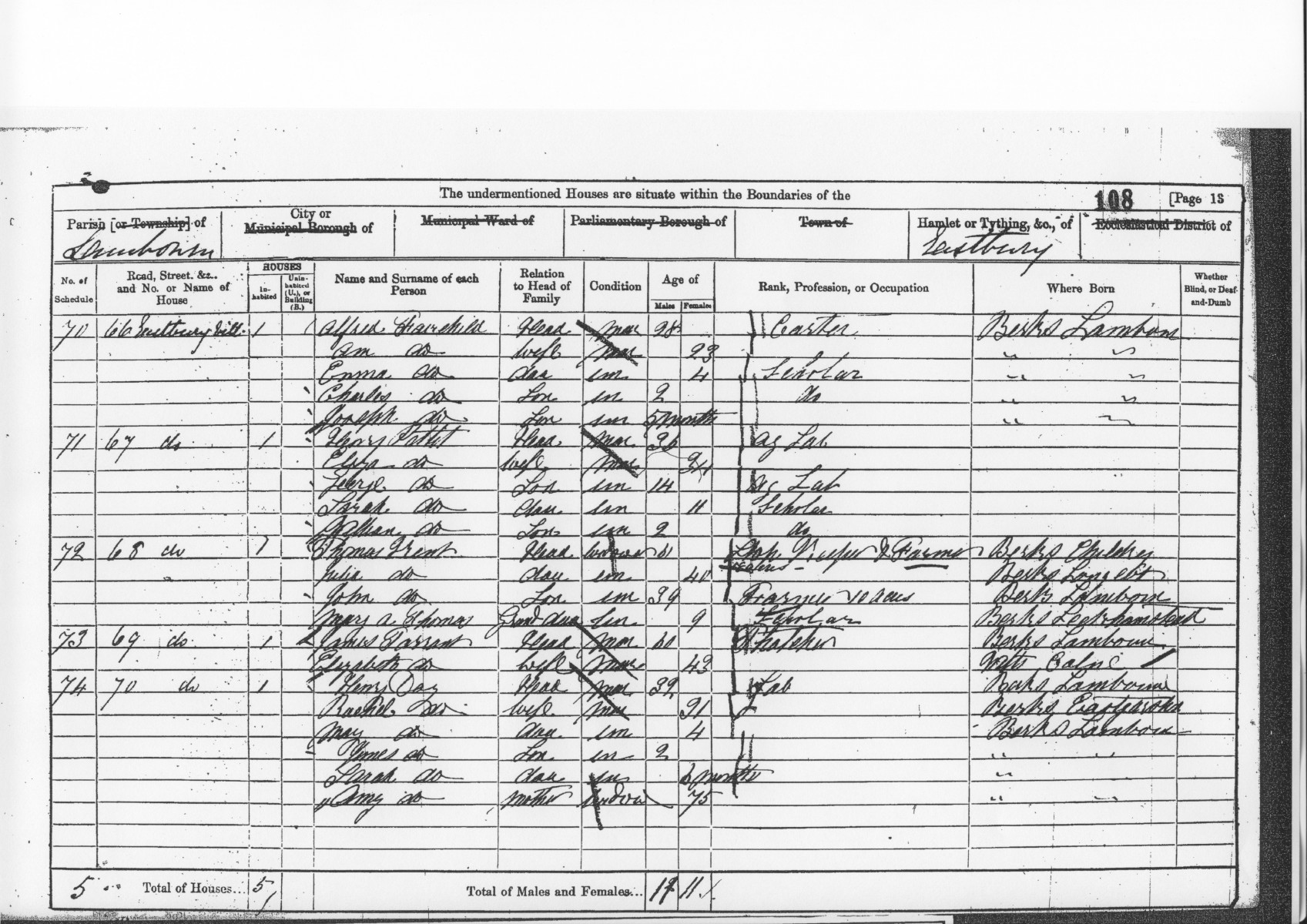 CH147: Eastbury 1861 Census RG9 726 f108b