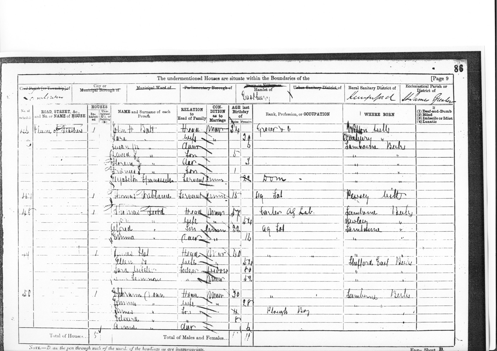 CH176: Eastbury 1881 Census RG11 1276 f86b