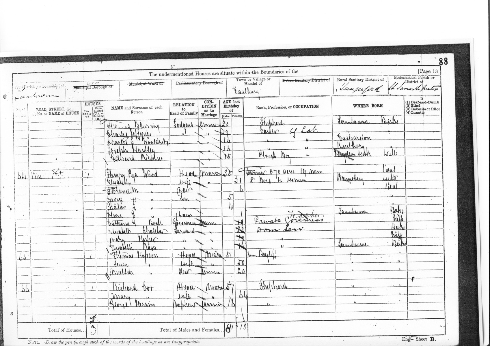 CH180: Eastbury 1881 Census RG11 1276 f88b