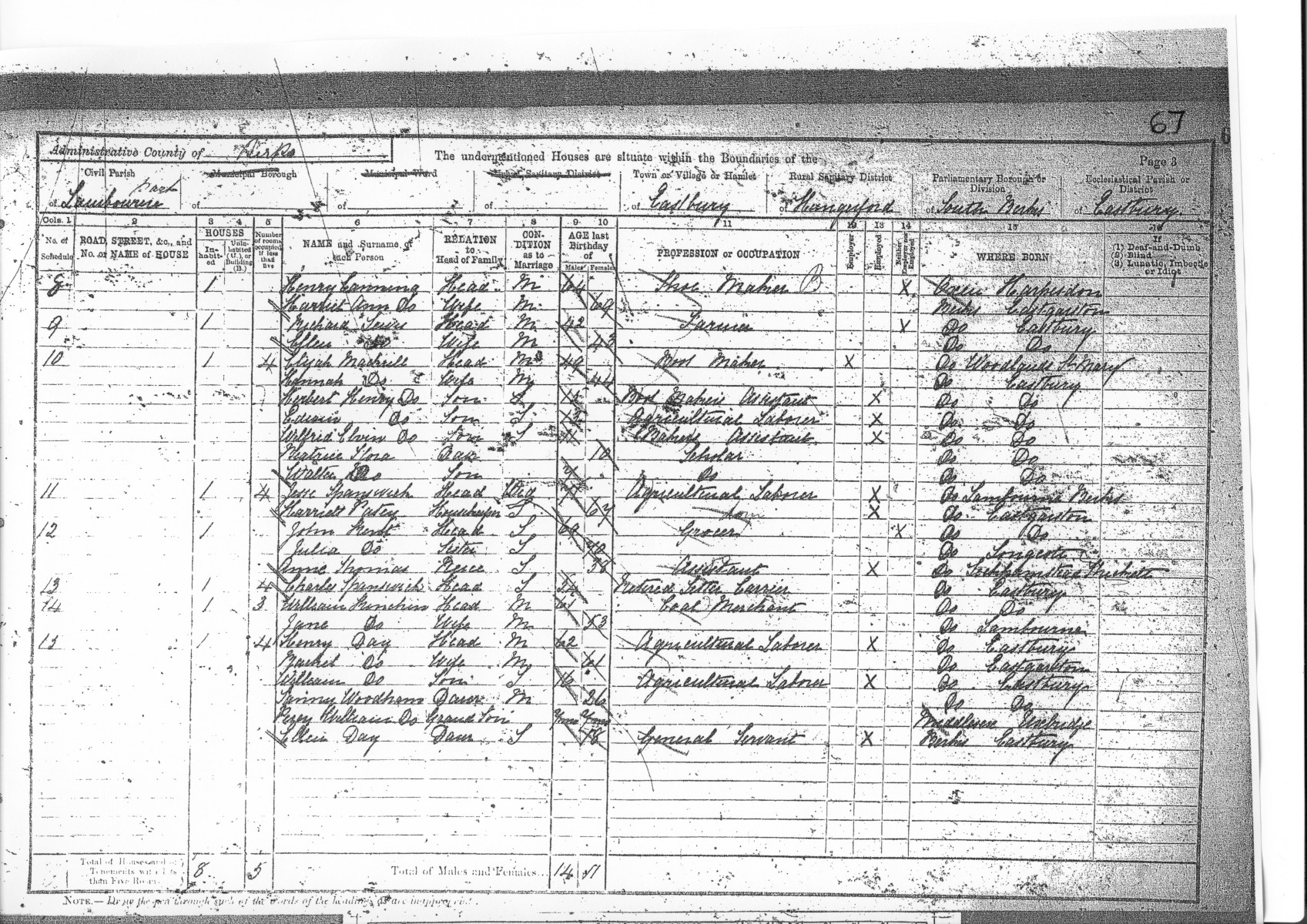 CH184: Eastbury 1891 Census RG12 973 f67b