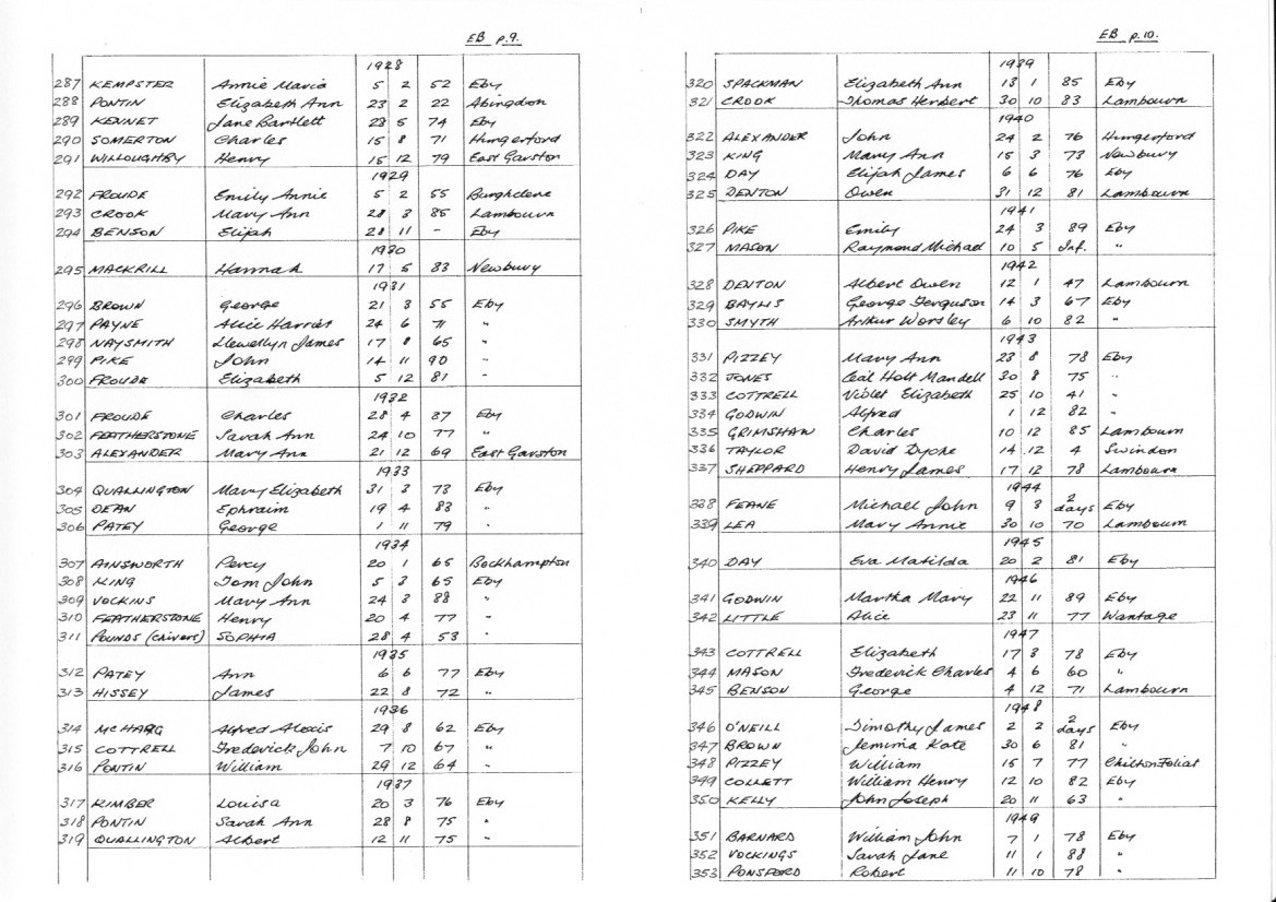 Eastbury Burials 1928-1949