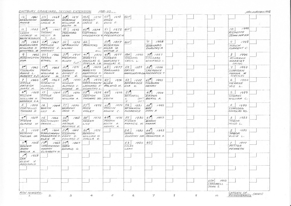 Eastbury Memorials, Chart of Church Graveyard Extension 2, 1958-1990