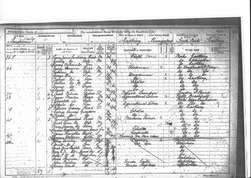 | CH188: Eastbury 1891 Census RG12 973 f69b |